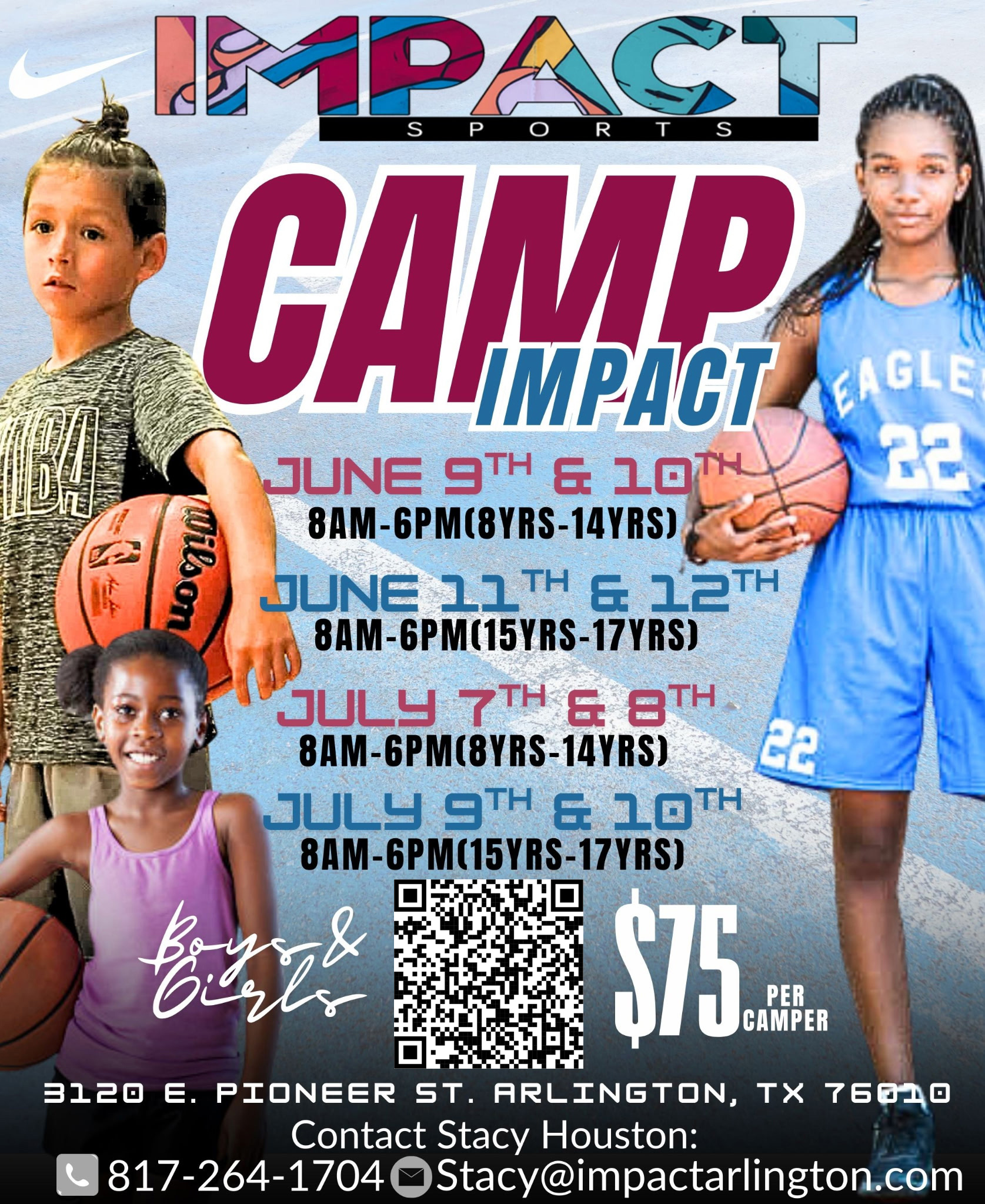 Presented by the IMPACT Center. Let's have a great time, fun learning and some basketball fun to enhance your skills! Camp Info • Camp 1: June 9 – June 10 (8yrs - 14yrs): 8AM - 6PM • Camp 2: June 11 – June 12 (15yrs - 17yrs): 8AM - 6PM • Camp 3: July 7 […]